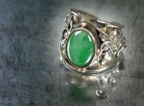 「天然翡翠のお手入れはいたって簡単です。なぜならジェダイトもネフライトも硬く、耐久性があり、ほとんどの化学薬品にも耐性があるので、最も丈夫なジュエリーだからです。洗浄する際は石鹸と水、また洗剤や超音波洗浄機、蒸気洗浄機等も使用できます。翡翠の輝きがくもったときにはワックスをかけ直すこともできます。B及びCクラスのジェダイトは耐久性が弱まっていますので薬品、洗剤や超音波洗浄機はさけて石鹸と水だけ使用するようにしましょう。」